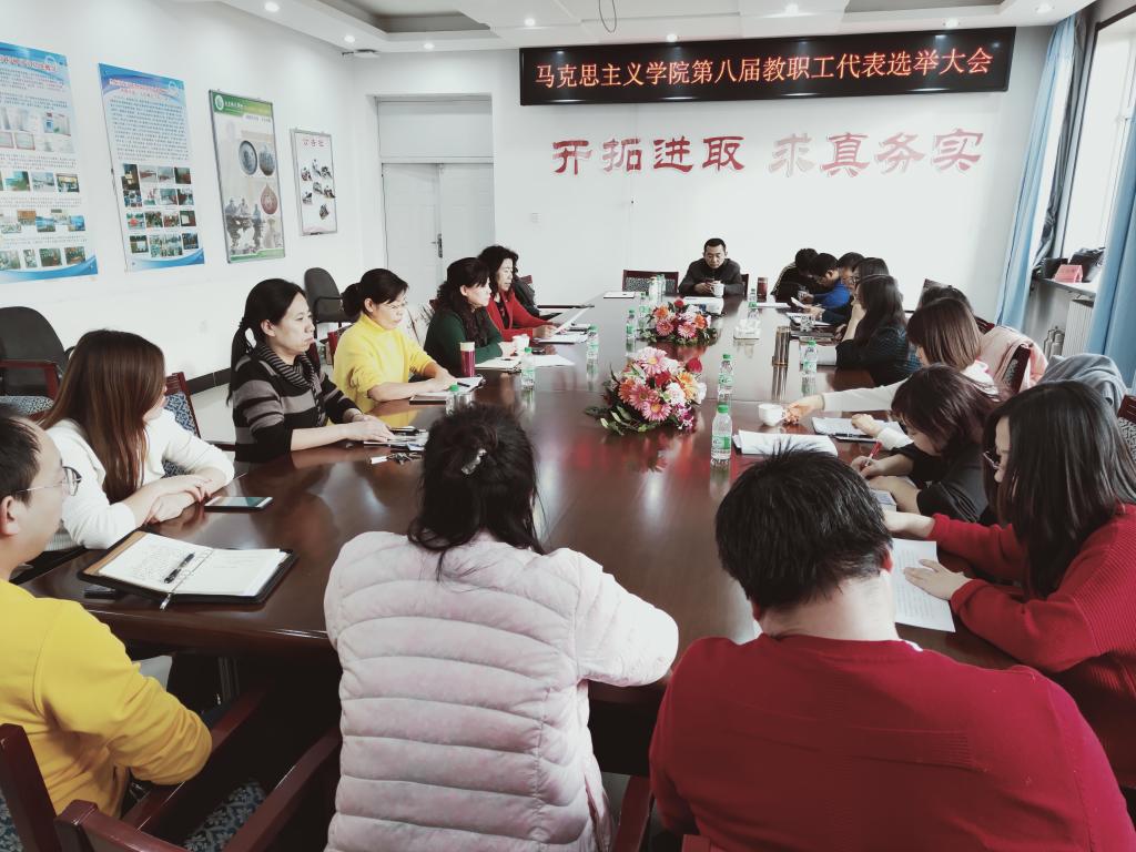 2019年1月14日,下午2点,马院全体教师在五教319会议室召开了第八届教职工代表大会选举大会。会议由党总支书记赵桂英同志主持。