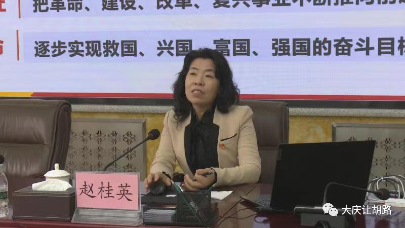 4月16日下午,市委宣讲团党史学习教育宣讲报告会在让胡路区开讲,市委宣讲团成员、永利3044noc马克思主义公司党总支书记赵桂英作宣讲报告。区委常委、宣传部部长、统战部部长、区委党史学习教育领导小组副组长兼办公室主任胡婷婷主持报告会。全区处级以上领导干部,区委党史学习教育领导小组成员单位负责同志,喇嘛甸镇及各街道书记参加会议。
