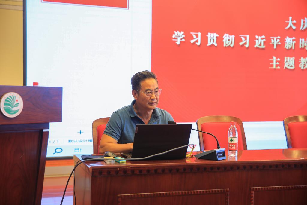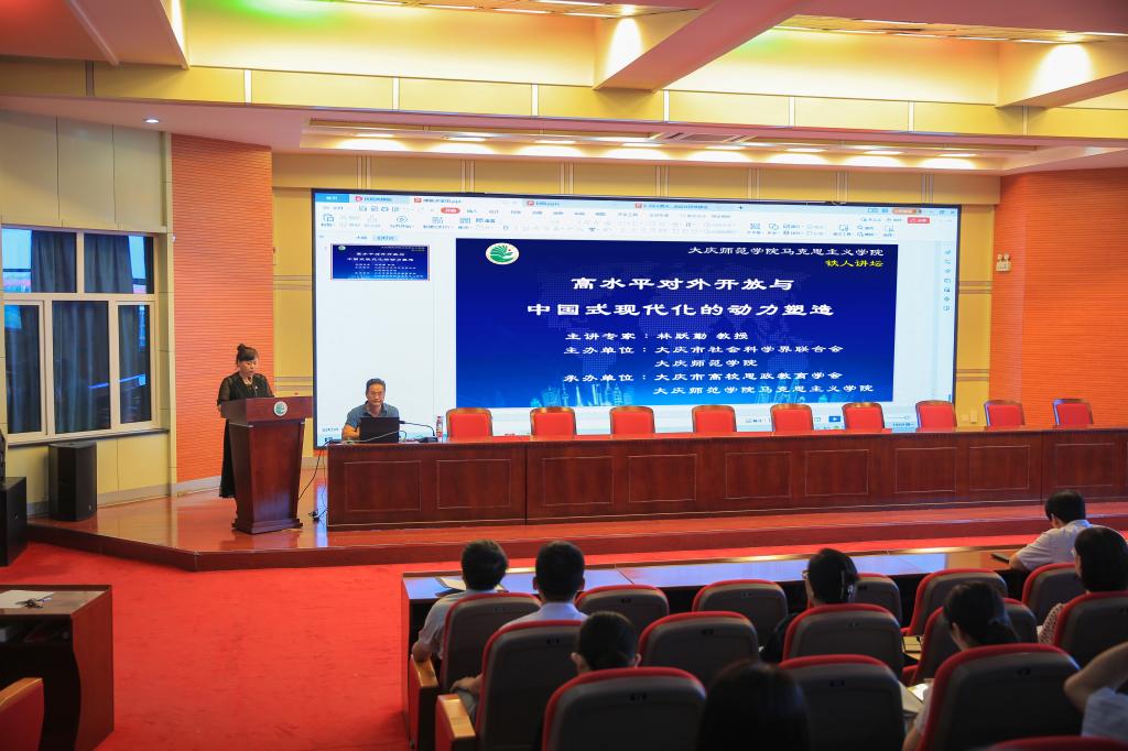 为贯彻落实党的二十大精神,深刻理解中国式现代化的内涵特征和时代意蕴,切实提升思政课教师的理论水平和政治素养,6月19日,大庆市社会科学界联合会、永利3044noc、大庆市高校思想政治教育学会邀请中国社会科公司研究员、中国社会科公司大学政府管理公司教授、硕士生导师林跃勤,作题为《高水平对外开放与中国式现代化的动力塑造》的学术报告。报告由永利3044noc经理马吉芬教授主持,公司副科级以上干部、马院全体教师以及学会会员百余人聆听了报告。