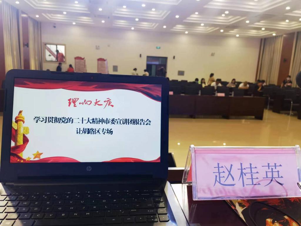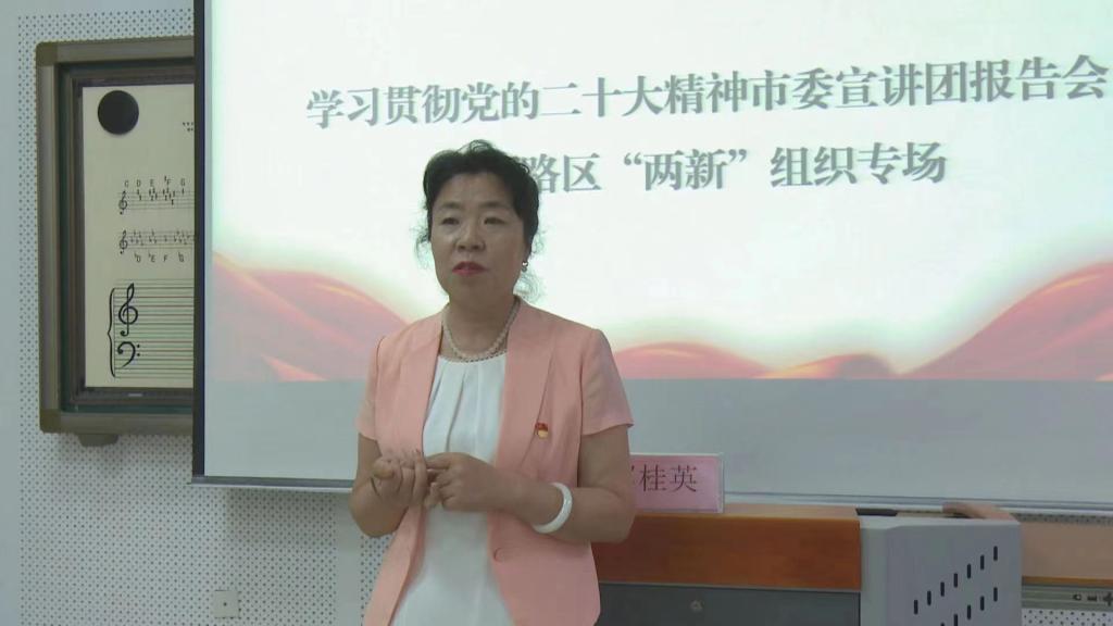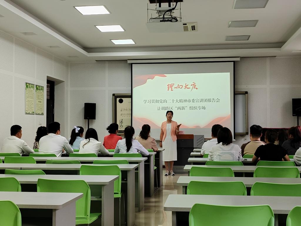 在让胡路区“两新”组织专场宣讲中,赵桂英同志围绕“高举旗帜凝聚力量”这一主题,结合“两新”组织党建工作实际开展宣讲。广大“两新”组织党员职工纷纷表示,将认真学习领悟,切实把党的二十大确定的目标任务贯穿于工作全过程,将学习成效转化为不断推动“两新”组织党建工作提质增效的强大动力。