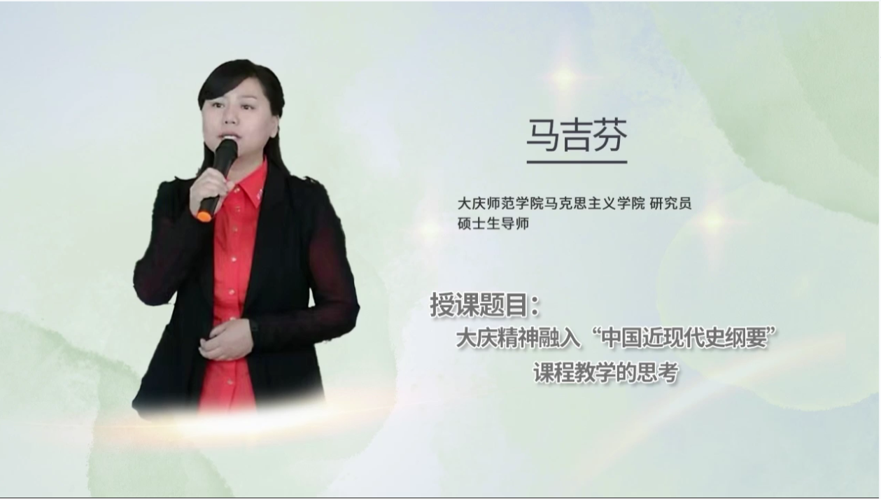 在《中国近现代史纲要》的课程教学培训中,永利3044noc行政负责人马吉芬同志受省高校纲要课分教指委主任徐奉臻教授之邀,课前经过认真准备、反复打磨,在备课会上作了题为《大庆精神融入“中国近现代史纲要”课程教学的思考》的主题报告。该报告首先对大庆精神融入“中国近现代史纲要”课程教学进行了融入说明,包括融入位置、融入目标、融入重点及融入难点等;其次分享了融入的具体内容,一是“融入内容之化隐为显——大庆精神形成的世界视野”;二是“融入内容之深挖精讲——纲要教材未尽的刨根问底”,集中阐述了大庆油田的开发建设,为建立我国现代石油工业体系做出了重大贡献,创造了巨大的物质财富、汇聚了磅礴的精神力量。思路清晰、逻辑性强,讲清了大庆精神“为何融、融什么、如何融”等问题。省高校纲要课分教指委副主任于景洋教授对此给予了高度评价,认为站位高远、视野广阔、设计精心、选材恰当,为全省高校思政课教师在纲要课中融入大庆精神铁人精神提供了模板。
