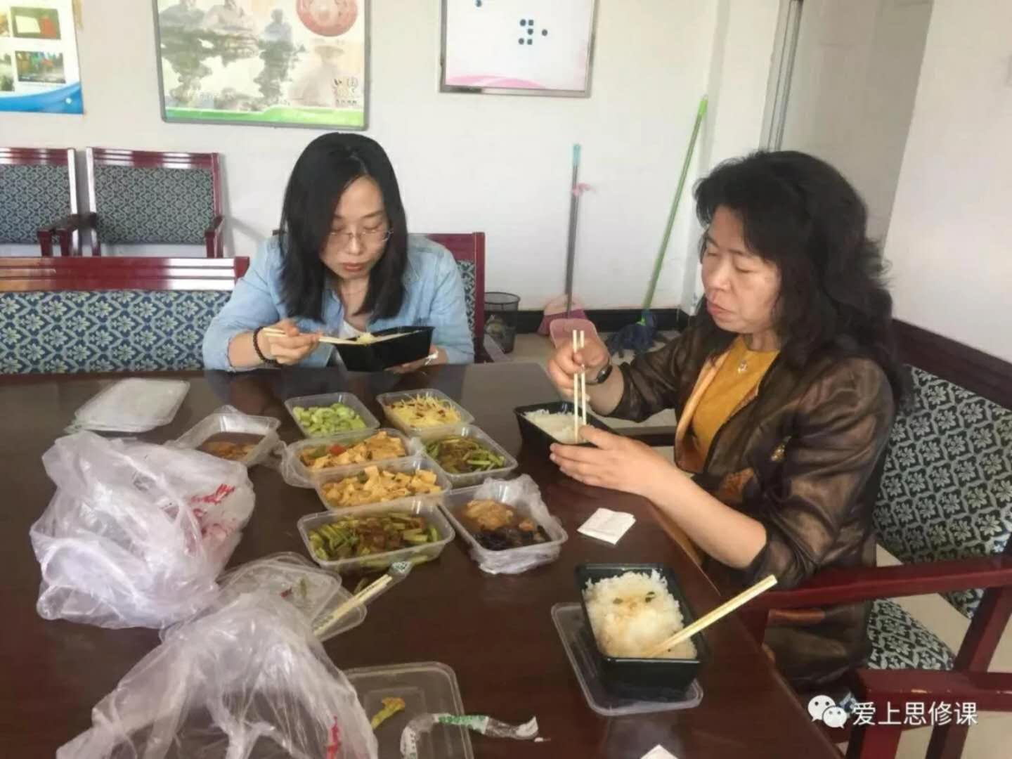 面对新形势,新任务,教育部贴心地为全国思政课教师举办网上直播培训,马院教师们更是不能错过难得的学习机会,下课后就奔赴会场,错过的内容也有老师照相留下课件,以便回放学习。为时一周的远程课程培训,时间安排非常紧凑,老师们可谓是废寝忘食,错过了食堂的饭点,就随便吃点盒饭对付一口;没有午休时间,就在会议室趴在桌上打个盹,下午继续补充精神大餐。