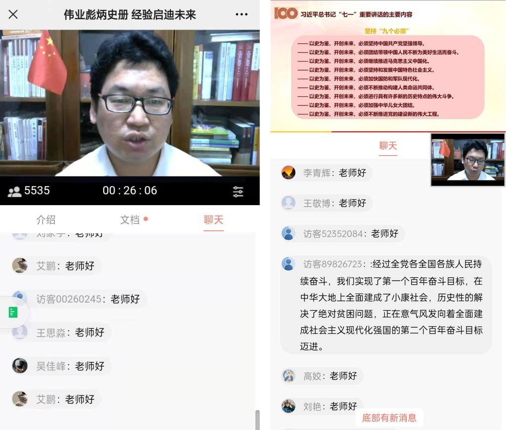 为深入学习贯彻习近平总书记在庆祝中国共产党成立100周年大会上的重要讲话精神,教育引导广大青年员工听党话、感党恩、跟党走,以不负时代、不负韶华的奋进姿态开启2021年秋季学期新征程。公司于2021年8月31日18:30,开展了以学习贯彻“七一”重要讲话精神为内容的2021年秋季学期“开学第一课”活动,特邀“七一”重要讲话精神省委宣讲团成员、公司永利3044noc副教授陈立勇,通过超星学习通平台直播的方式给全体在校员工开课。