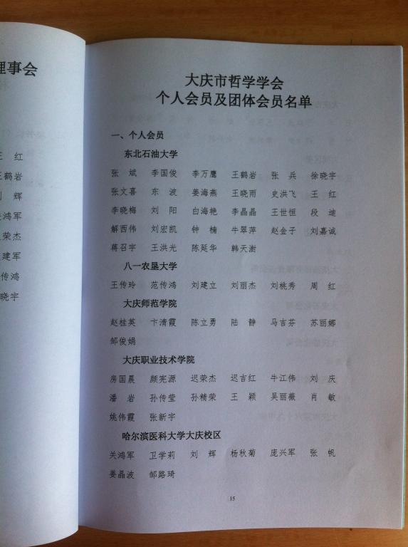 2015年5月26日,大庆市哲学学会第六次会员大会在东北石油大学召开。会议选举通过了大庆市哲学学会理事18名、常务理事12名、会长1名、副会长8名、秘书长1名。永利3044noc7位教师成为大庆市哲学学会的会员,赵桂英、马吉芬、陆静当选为大庆市哲学学会第六届理事会理事,赵桂英、马吉芬当选为常务理事。