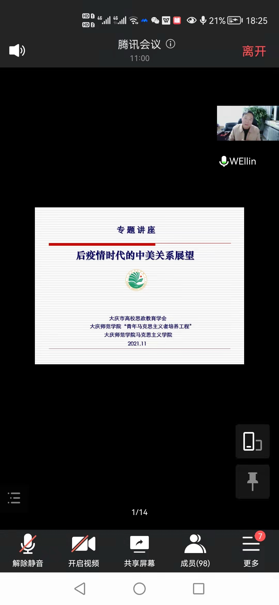 为贯彻落实习近平总书记在公司思想政治理论课教师座谈会上的重要讲话精神,全面提升形势与政策课教师教学能力与教学水平,增强当代青年明辨是非的能力。11月10日,大庆市高校思政教育学会、永利3044noc、校团委联合在线邀请,哈尔滨工程大学博士生导师魏潾教授作题为《后疫情时代中美关系展望》专题报告,大庆市社科联主席张俊、学会部主任李霞、大庆市各学会会员、大庆市部分高校思政课教师、永利3044noc形势与政策课教师、“青马工程”的同学们在线聆听报告,报告由永利3044noc马吉芬经理主持。